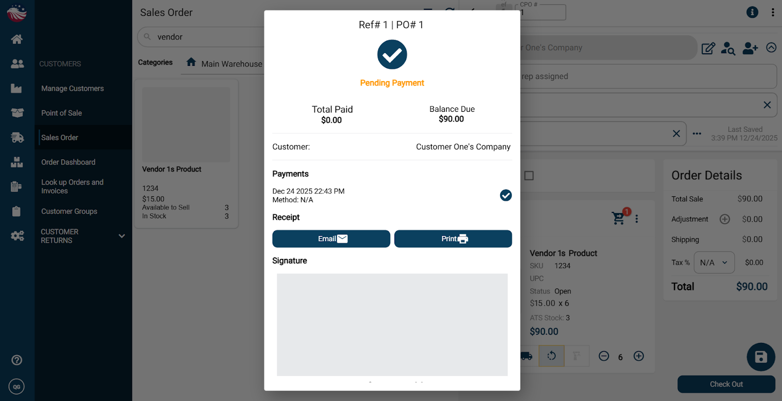 Once you select On Account, the invoice is processed. From here you can email it, print it, and even collect a signature.