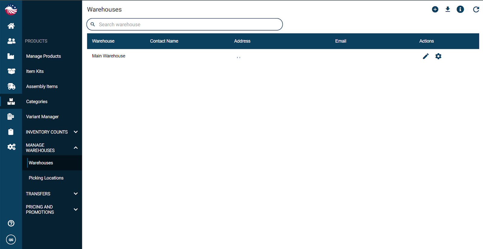 Navigate to Products > Manage Warehouses > Warehouses