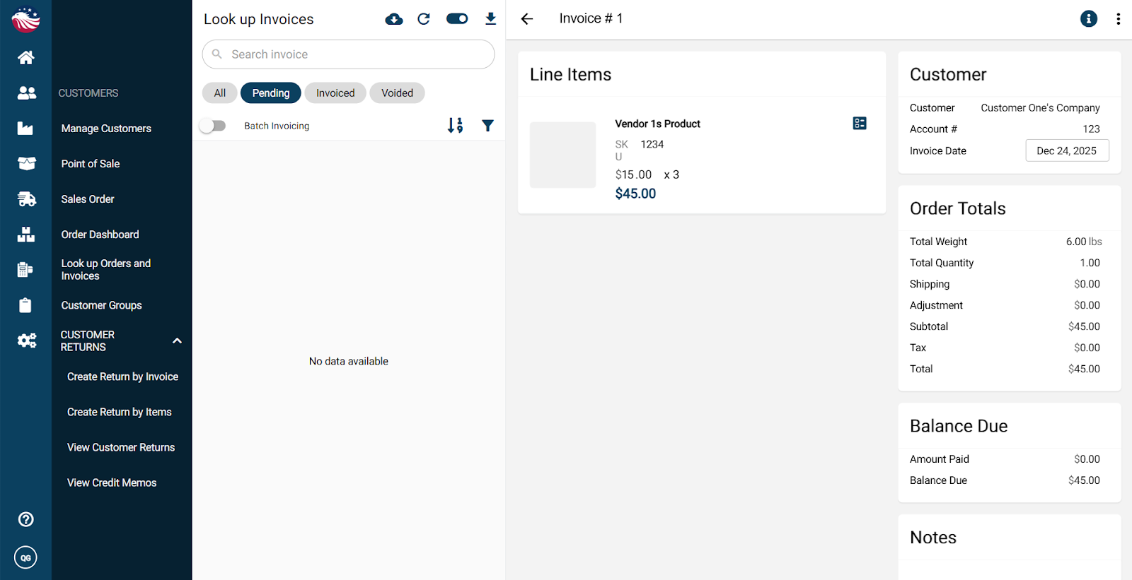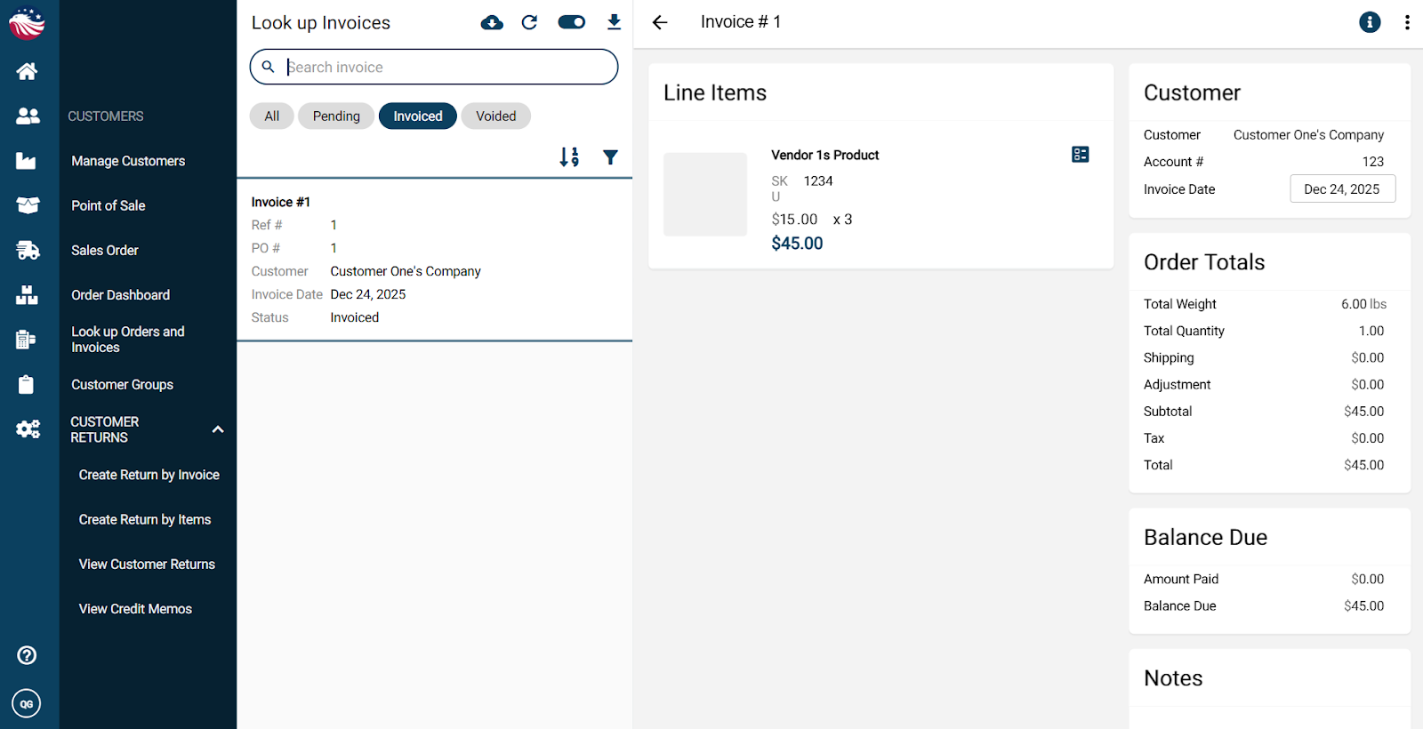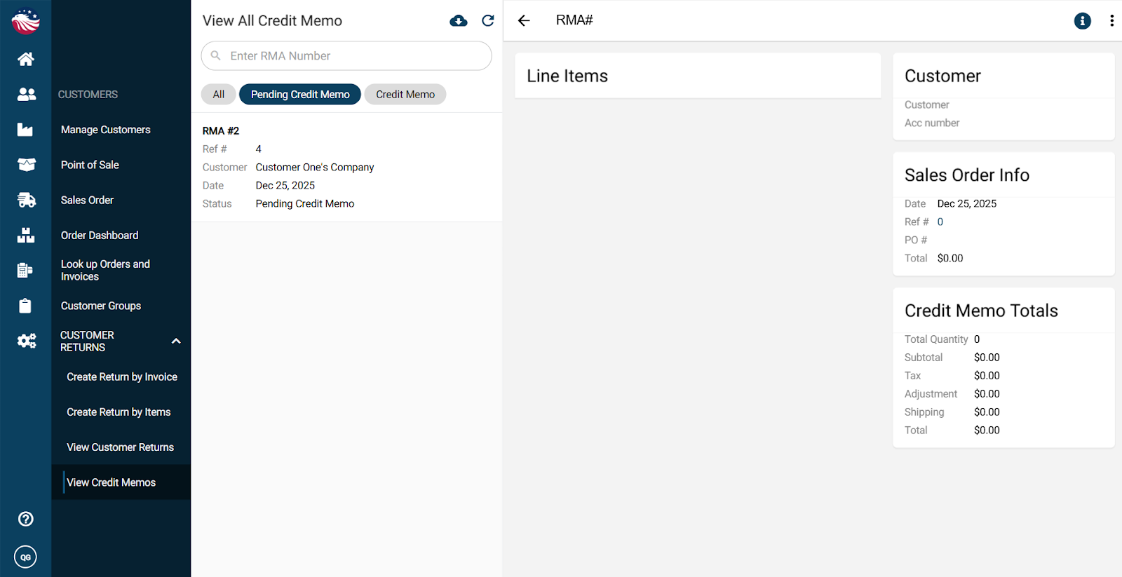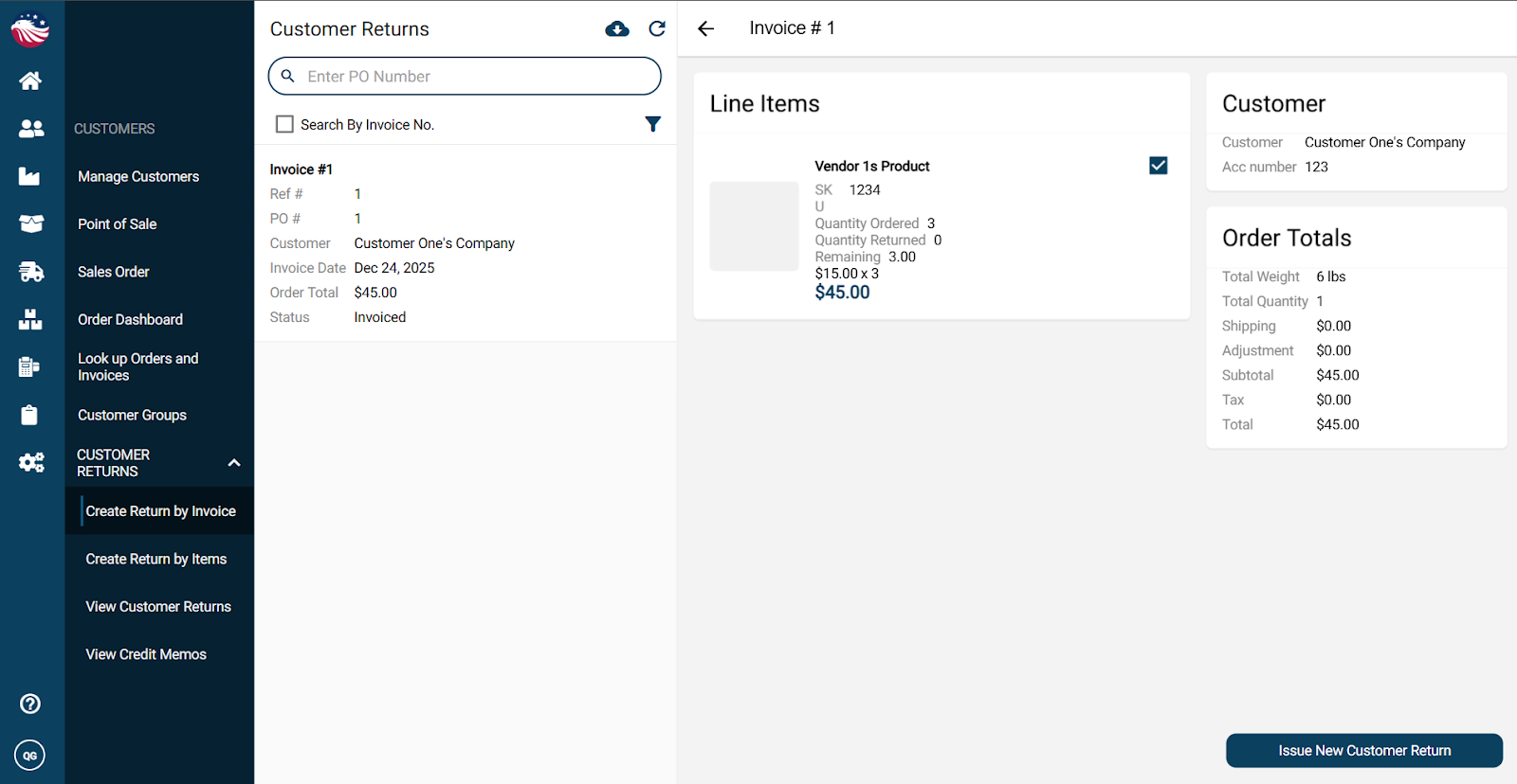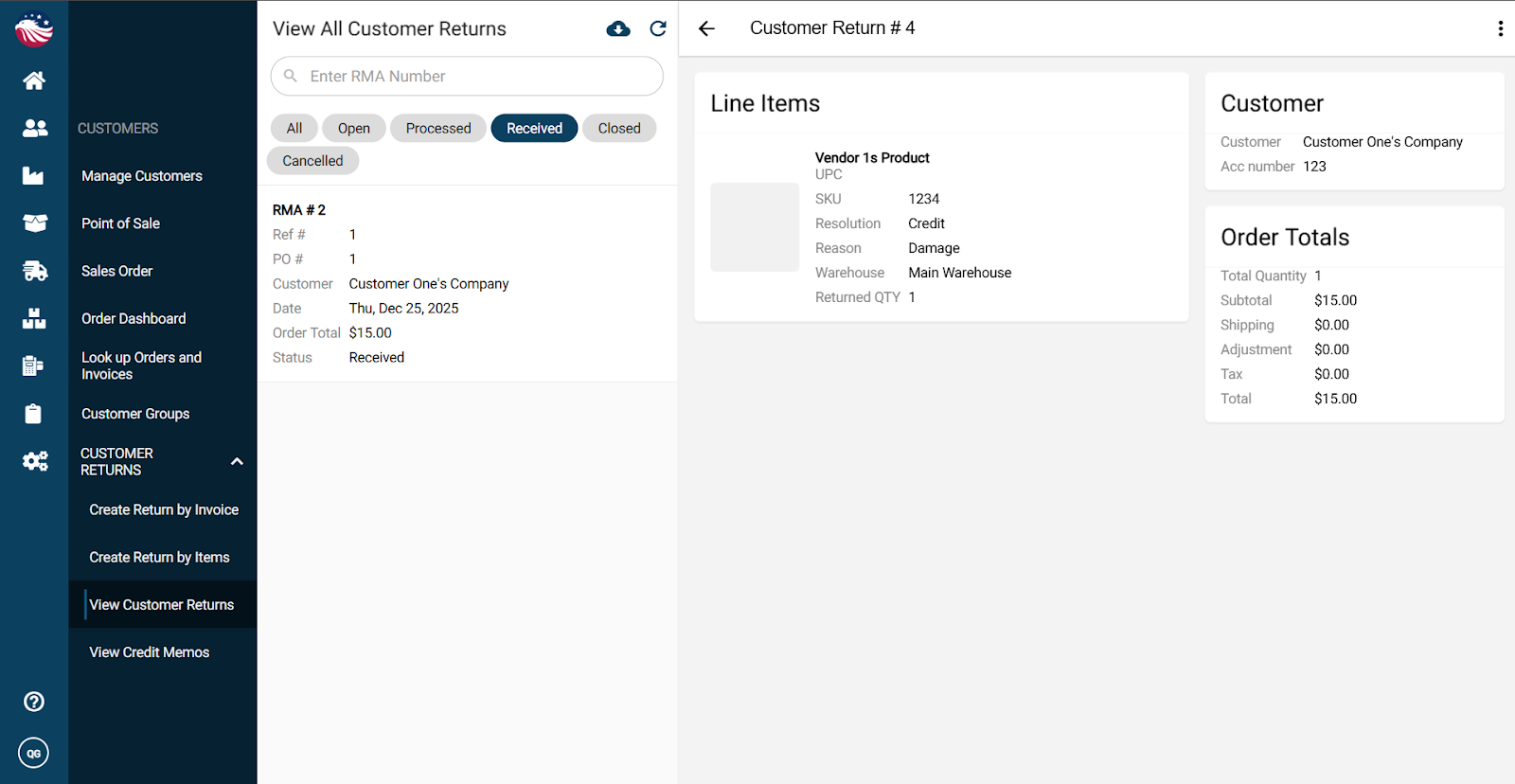Navigate to Customers > Customer Return