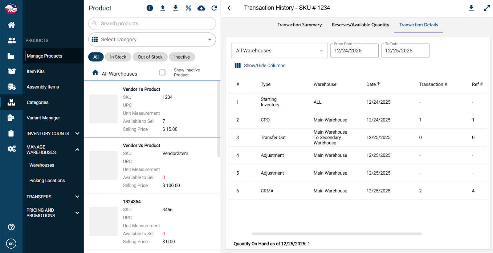 You can also see the return reflected in product history: