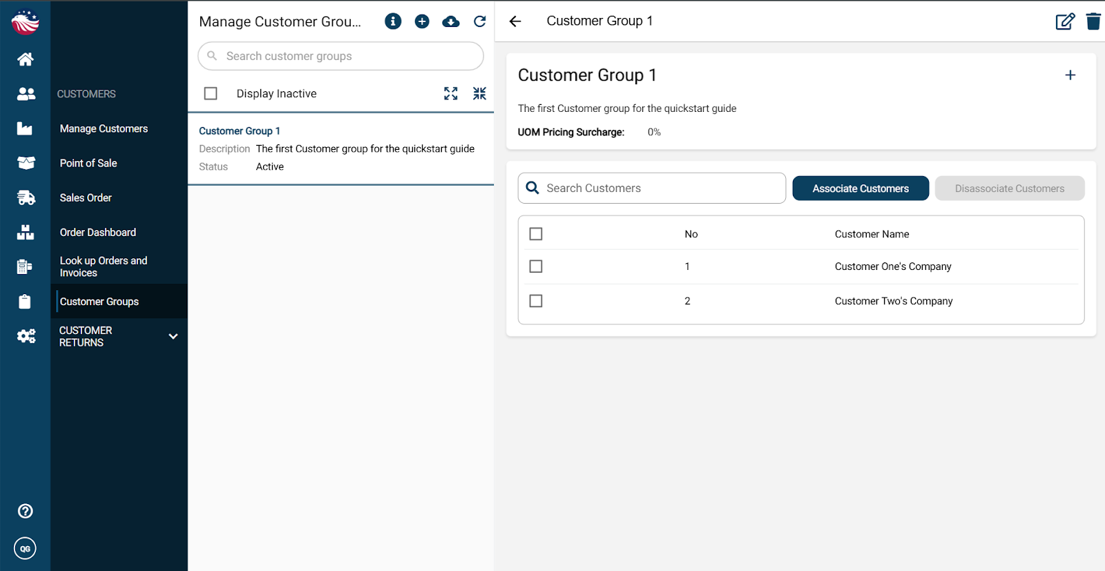 Associate customers to this list by hitting Associate Customers and then selecting the customers from the list presented.