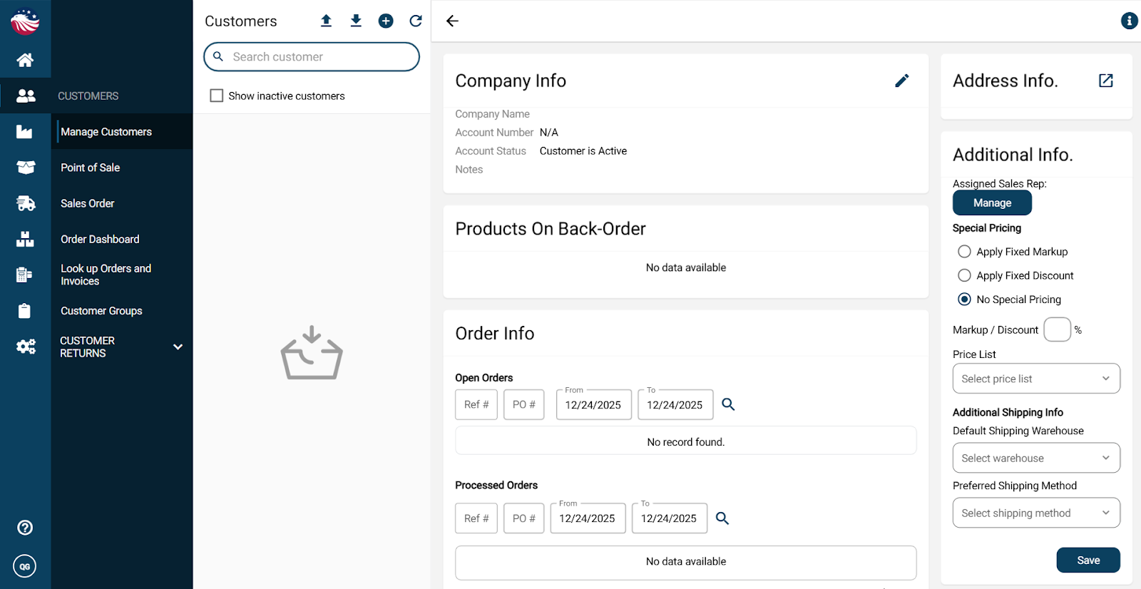 Go to Customers > Manage Customers