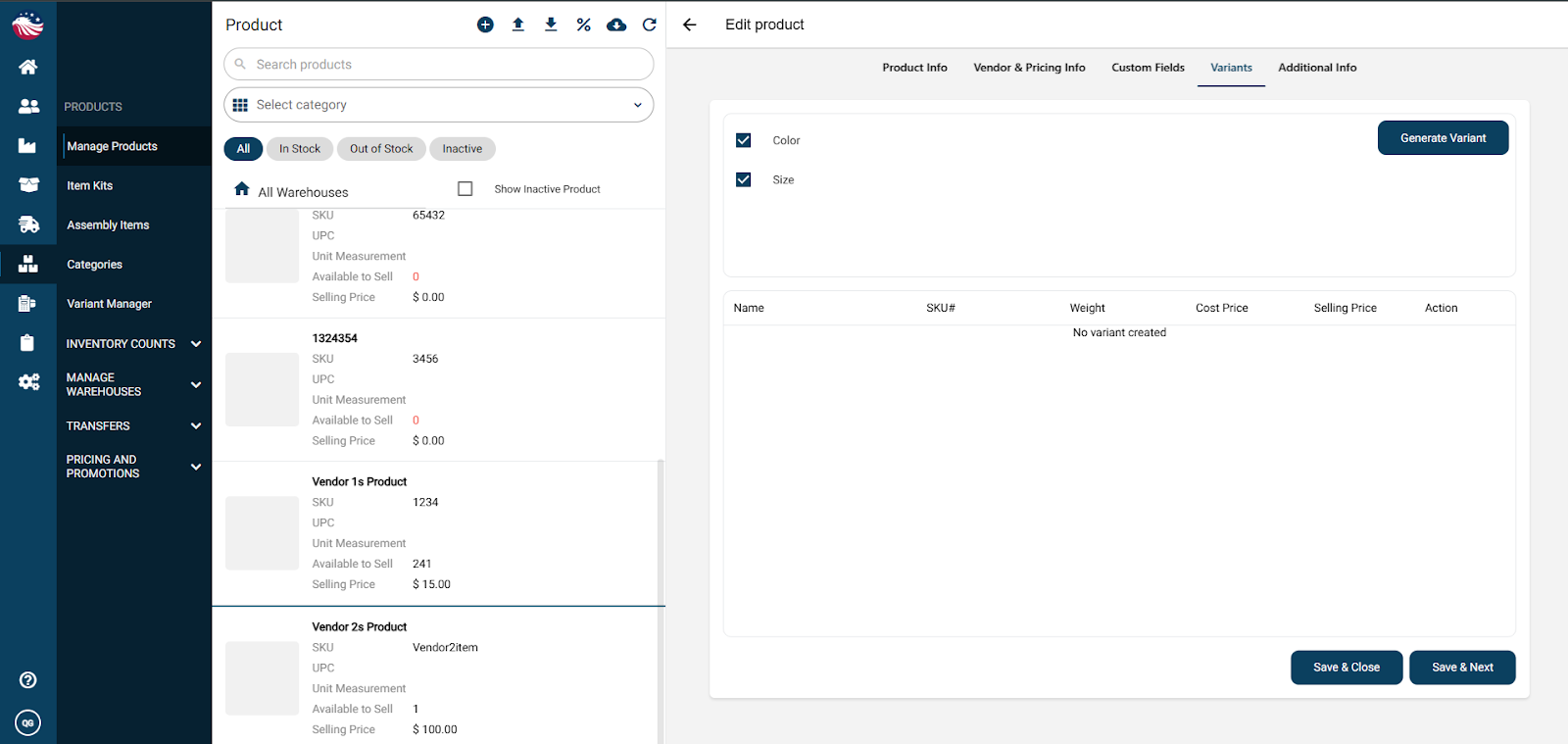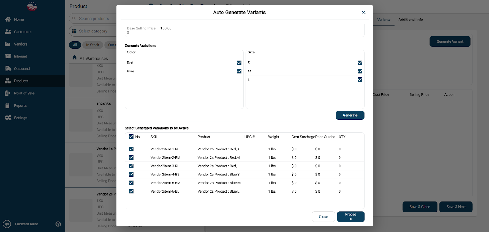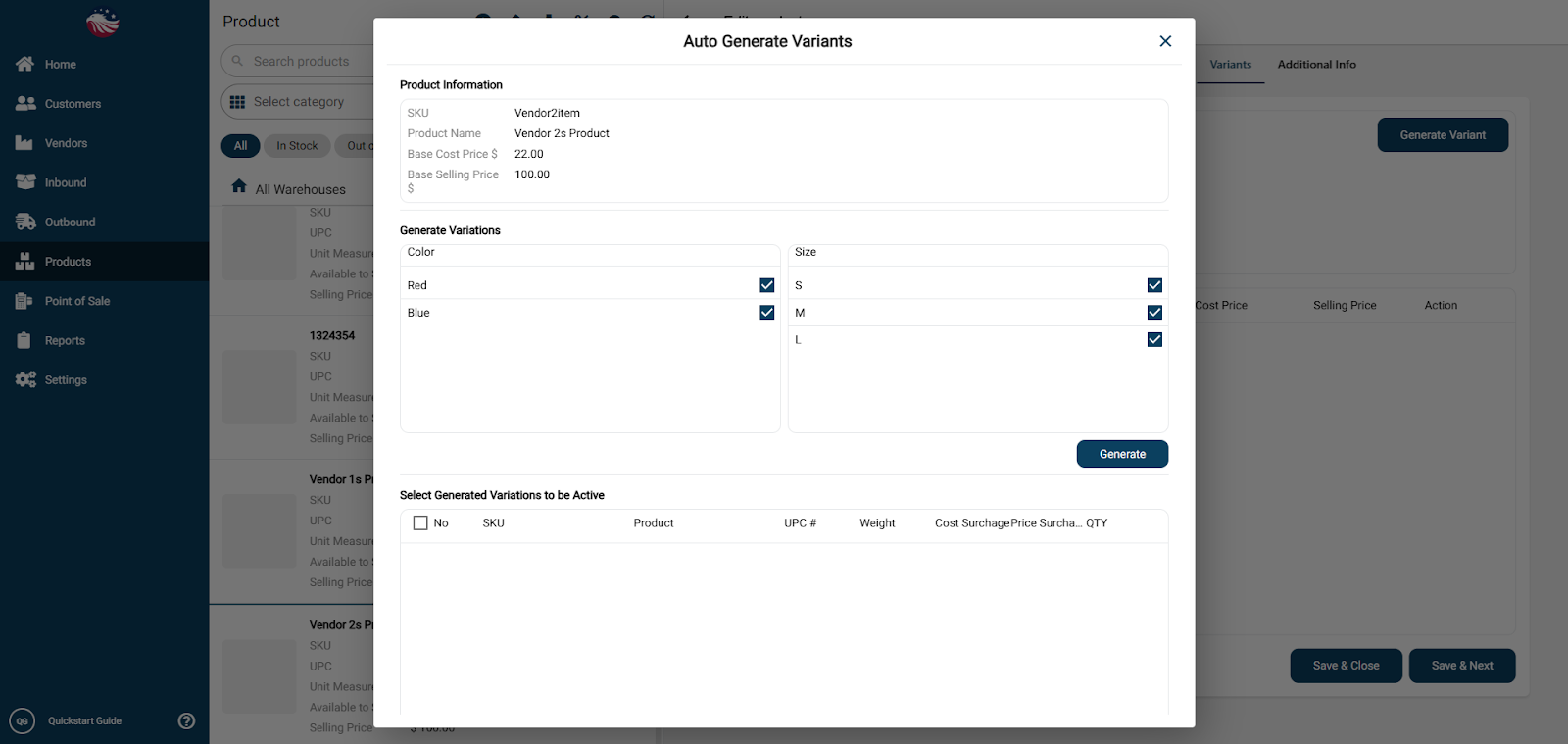 Hit the Variants tab and check the boxes for the variations of this product, then click Generate.