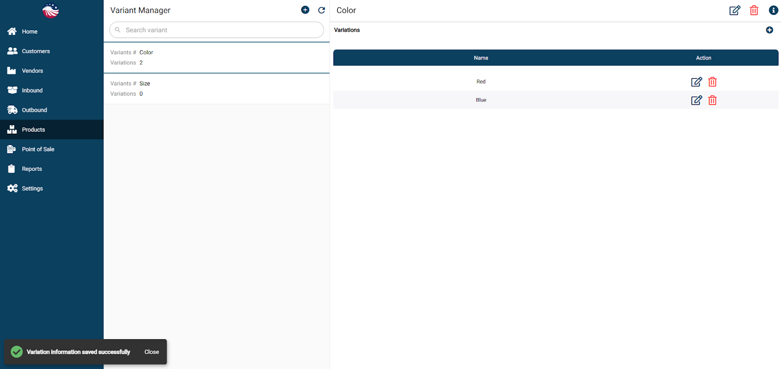 In the top right corner, below the “i” is another Plus icon. Hit that to Add Variations (e.g., Red, Blue).