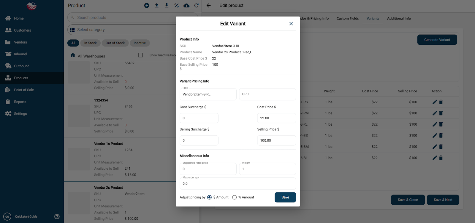 To edit the price of a specific variant, click on the Pencil icon in that variant’s row.