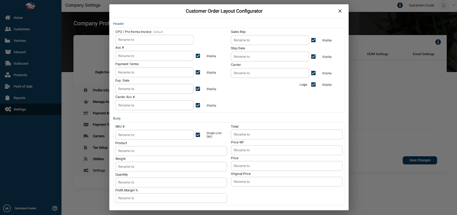 You can Rename Column Headers (e.g., change "Qty" to "Quantity") or uncheck columns to hide them entirely.