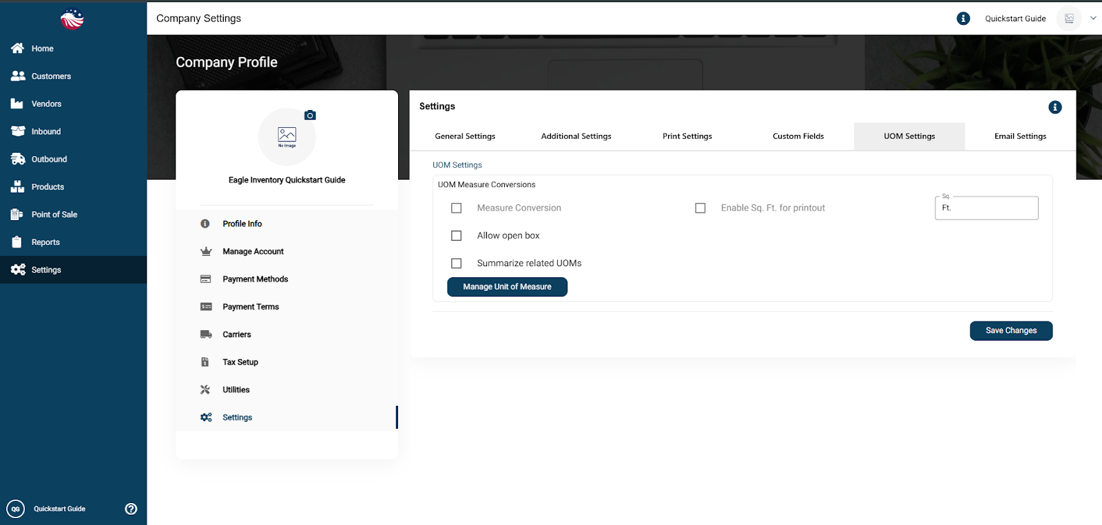 Click on the UOM Settings tab in the top navigation bar.