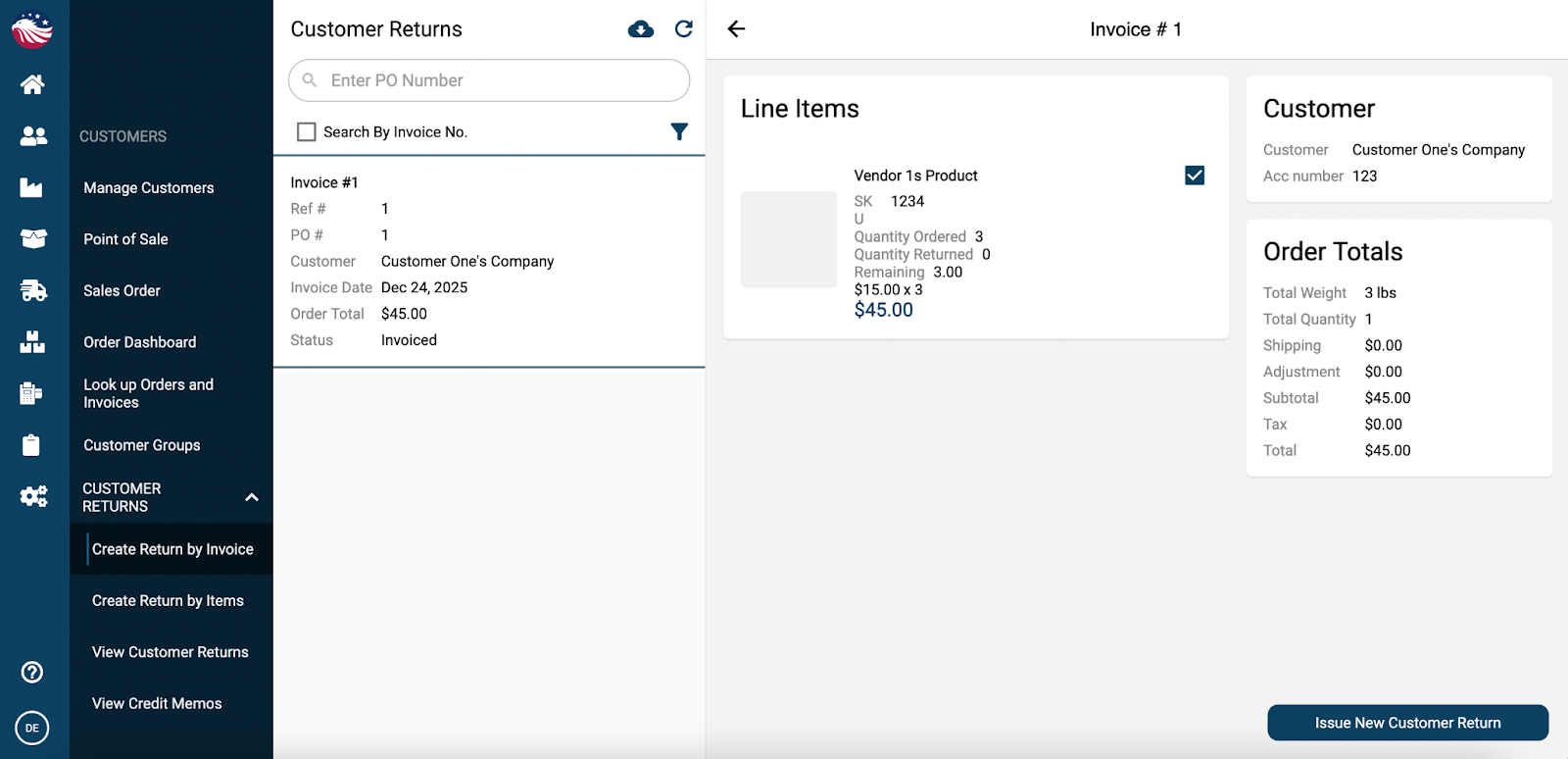 Go to Customers > Customer Returns > Create Return by Invoice.