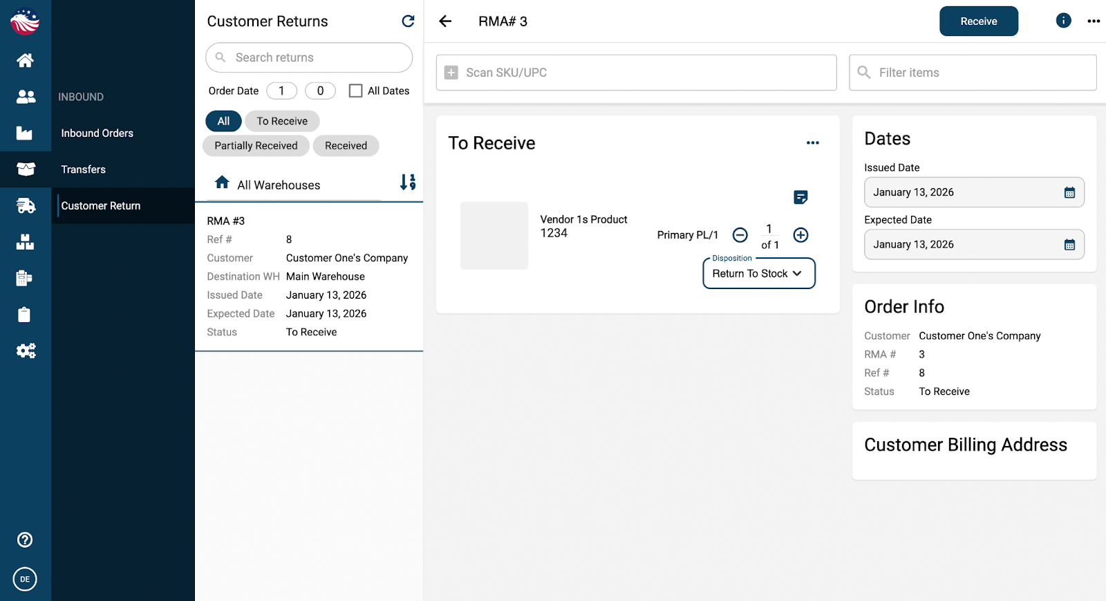 If you chose a Regular Return, your warehouse team needs to officially accept the package.