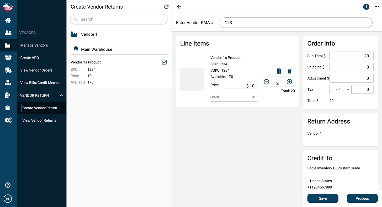 To find that return, go to Vendors > View Vendor Returns and find the vendor RMA you just put in.