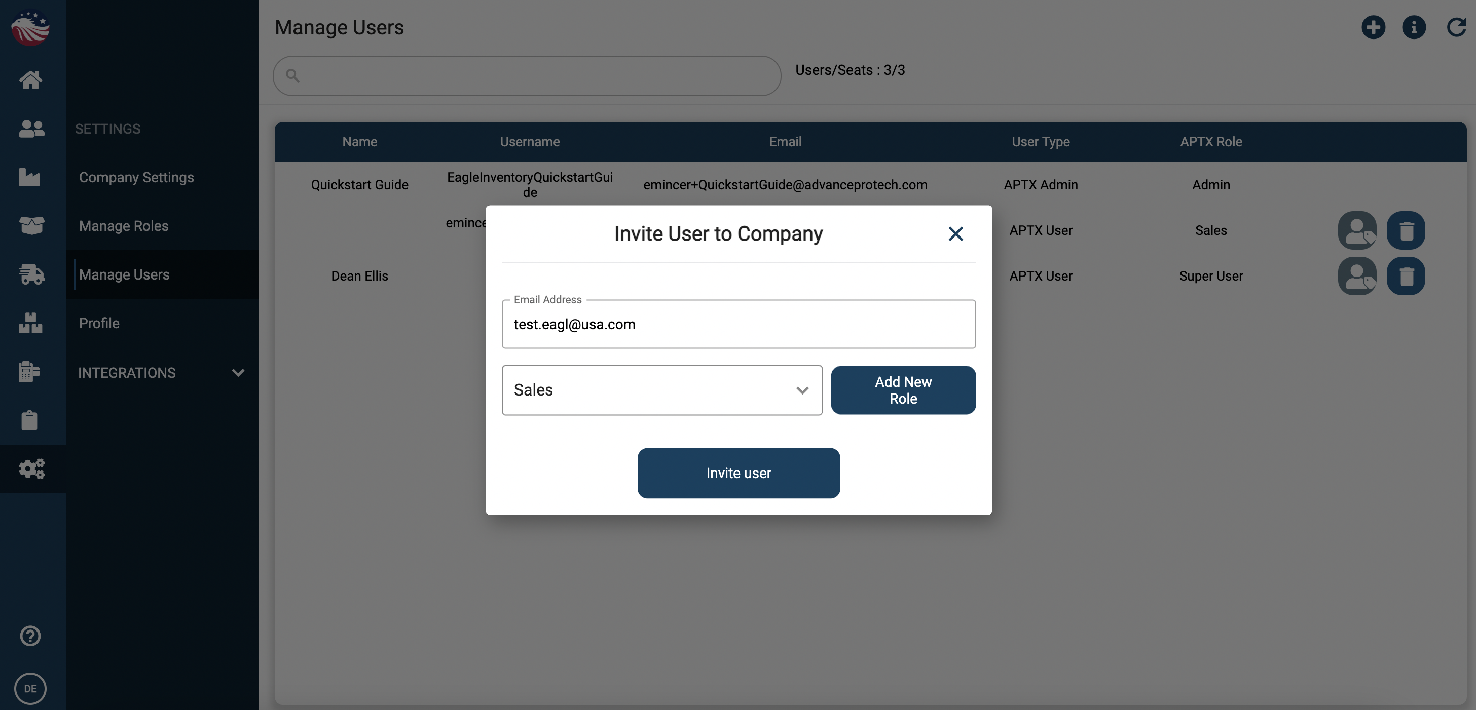 Click Invite User.
